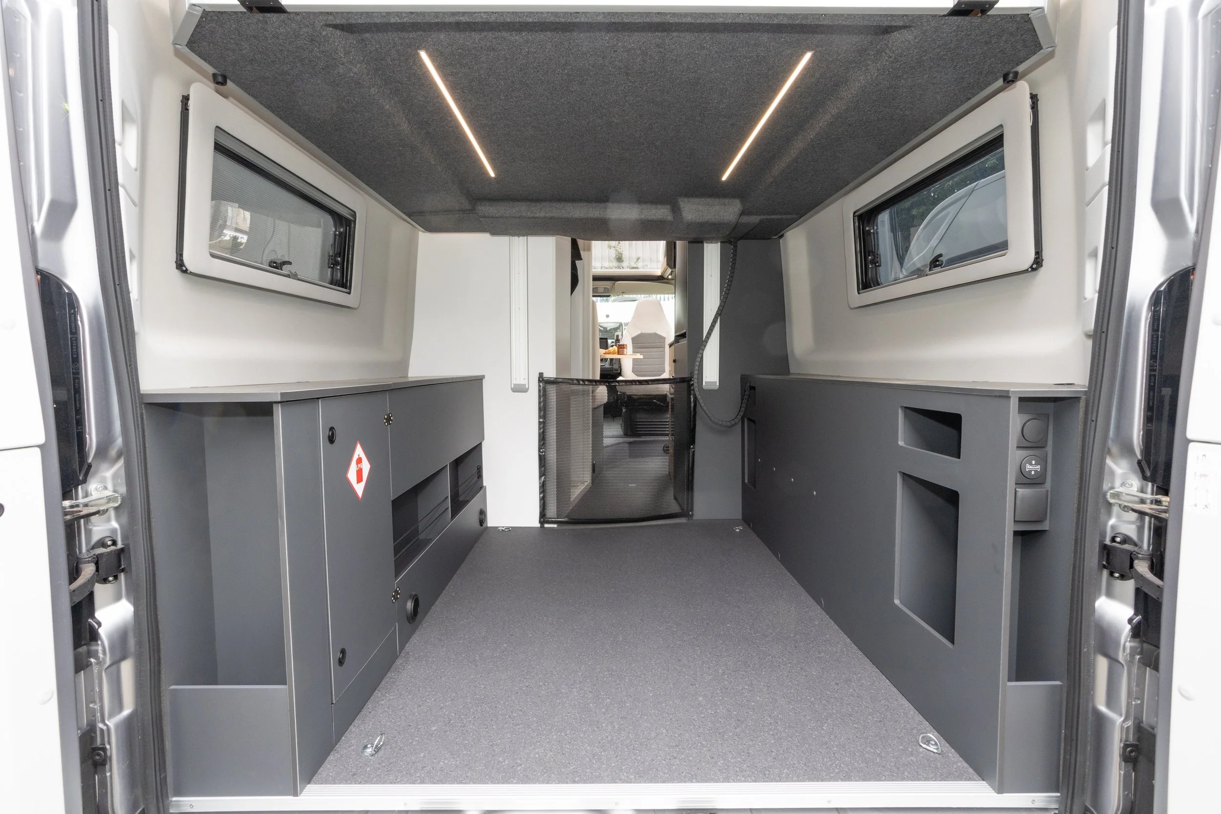 Underneath the premium finish lies practical brilliance: the front panoramic window floods the cabin with light, 16″ alloy wheels and automatic gearbox ensure effortless driving, and the electric liftable rear bed transforms into a generous garage space for gear or bikes.