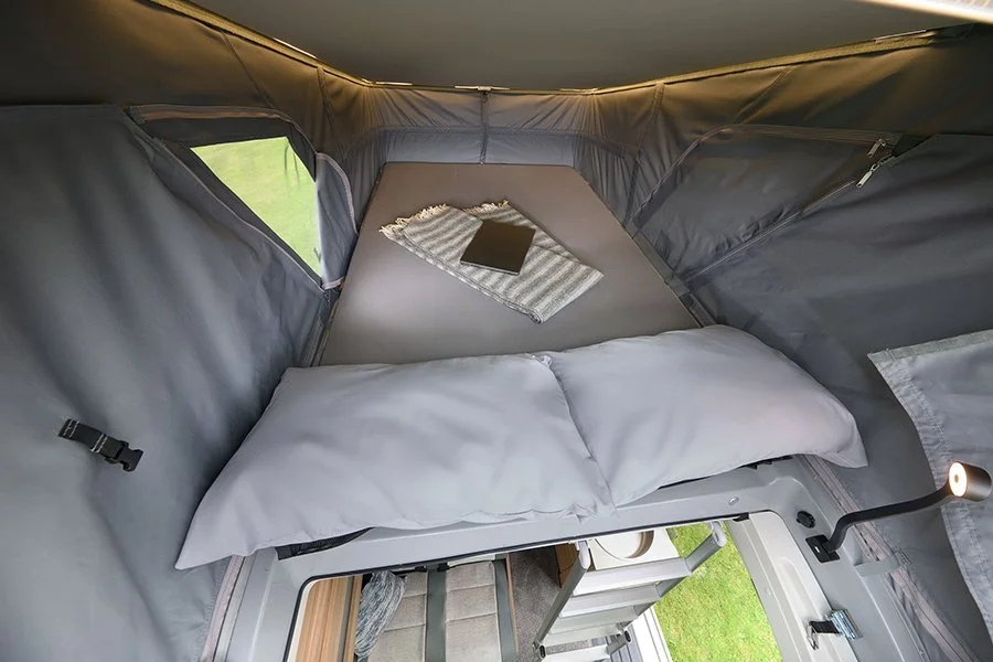 Built for all-season use, the B64 includes Grade III insulation, Truma Diesel Combi D4E heating, a 100 W solar panel, and a 105 Ah AGM battery.