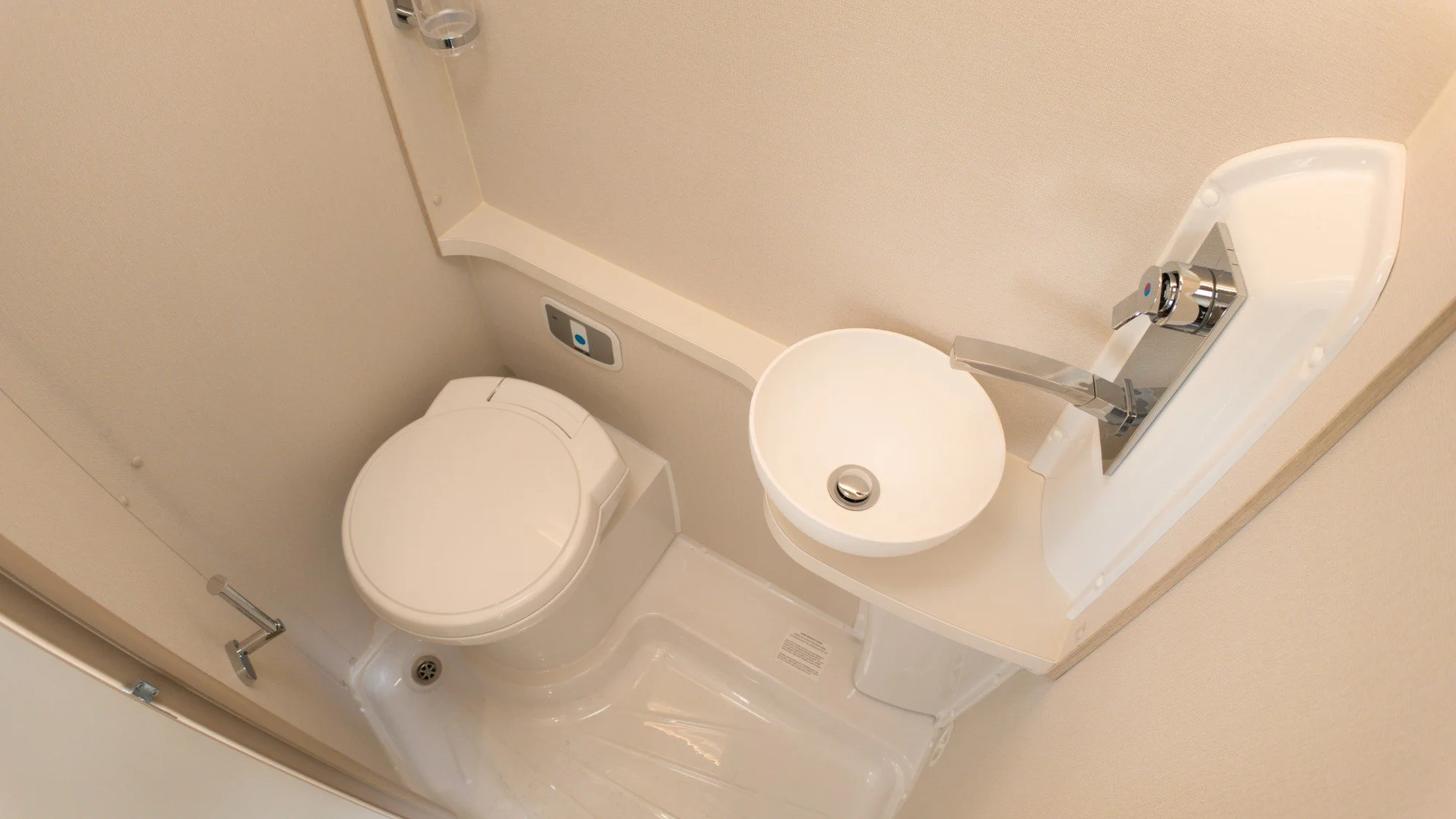 A rear washroom gives you privacy without compromising the living area. Elddis The interior features light-wood cabinetry contrasted with dark fabrics, while practical touches include a lightweight retractable mattress, double-glazed windows, and underslung luggage space.