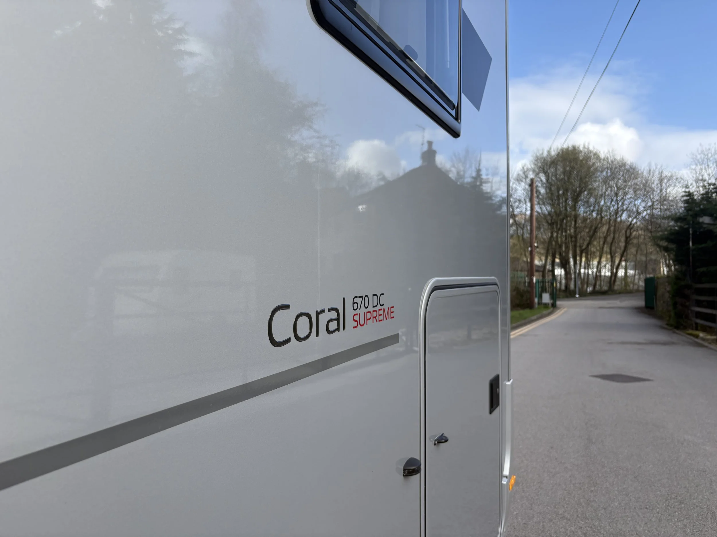 The Adria Coral Supreme 670 DC features a stylish and practical layout designed for comfortable touring.