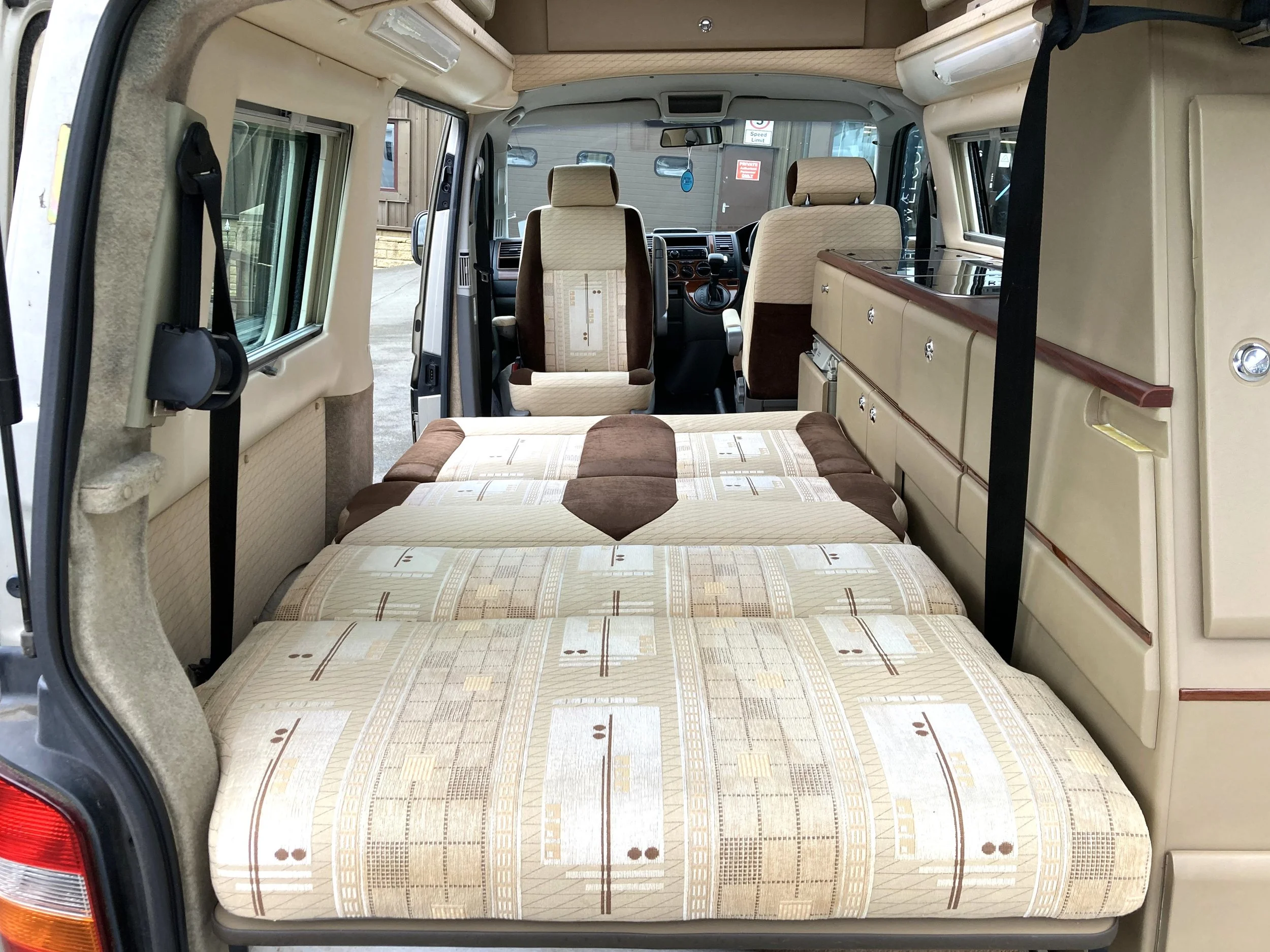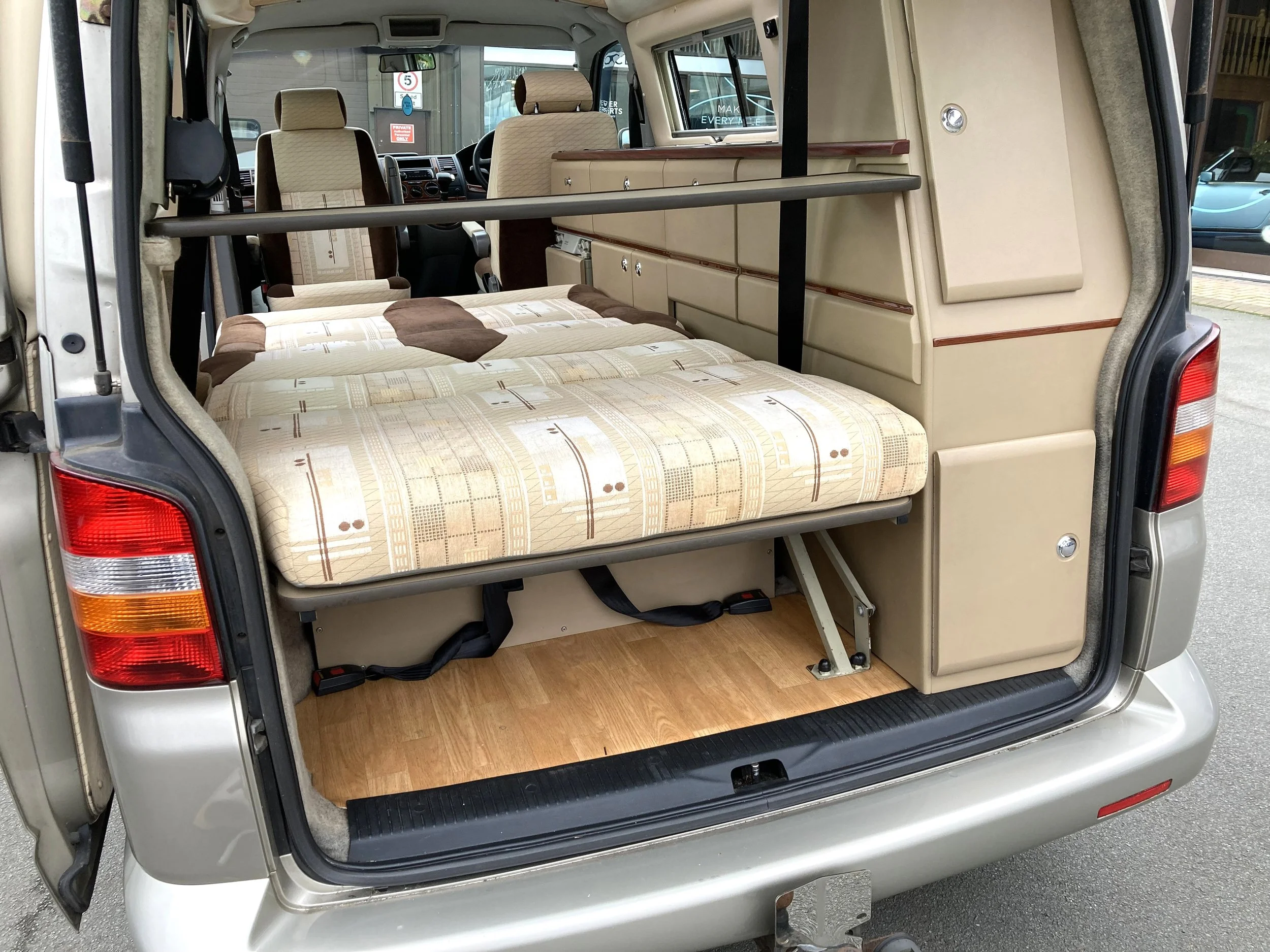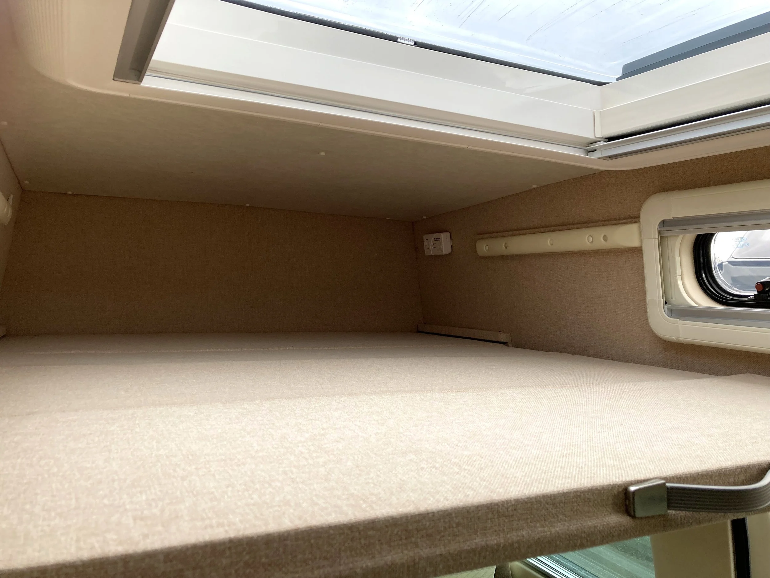 Inside, the layout makes excellent use of space. The high-top roof provides generous headroom and houses a comfortable small double bed, perfect for leaving made up and ready for use. Down below, the forward-facing rear seats quickly convert into a second double bed in seconds, giving flexible sleeping for up to four without complicated setup.