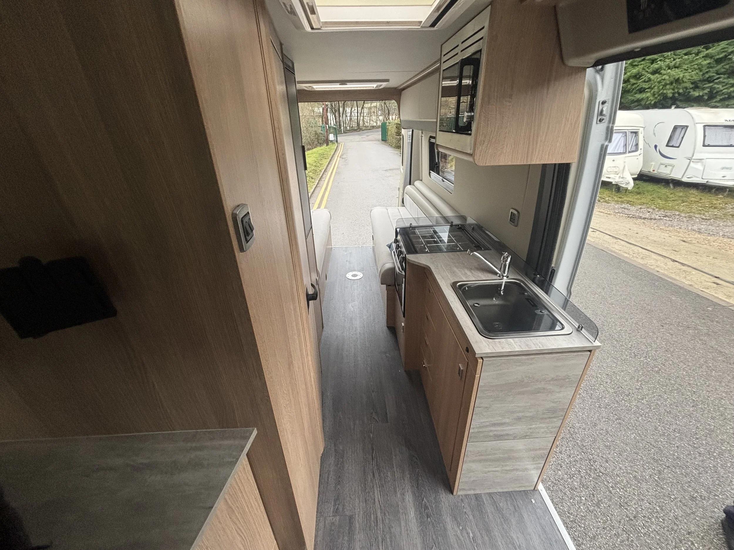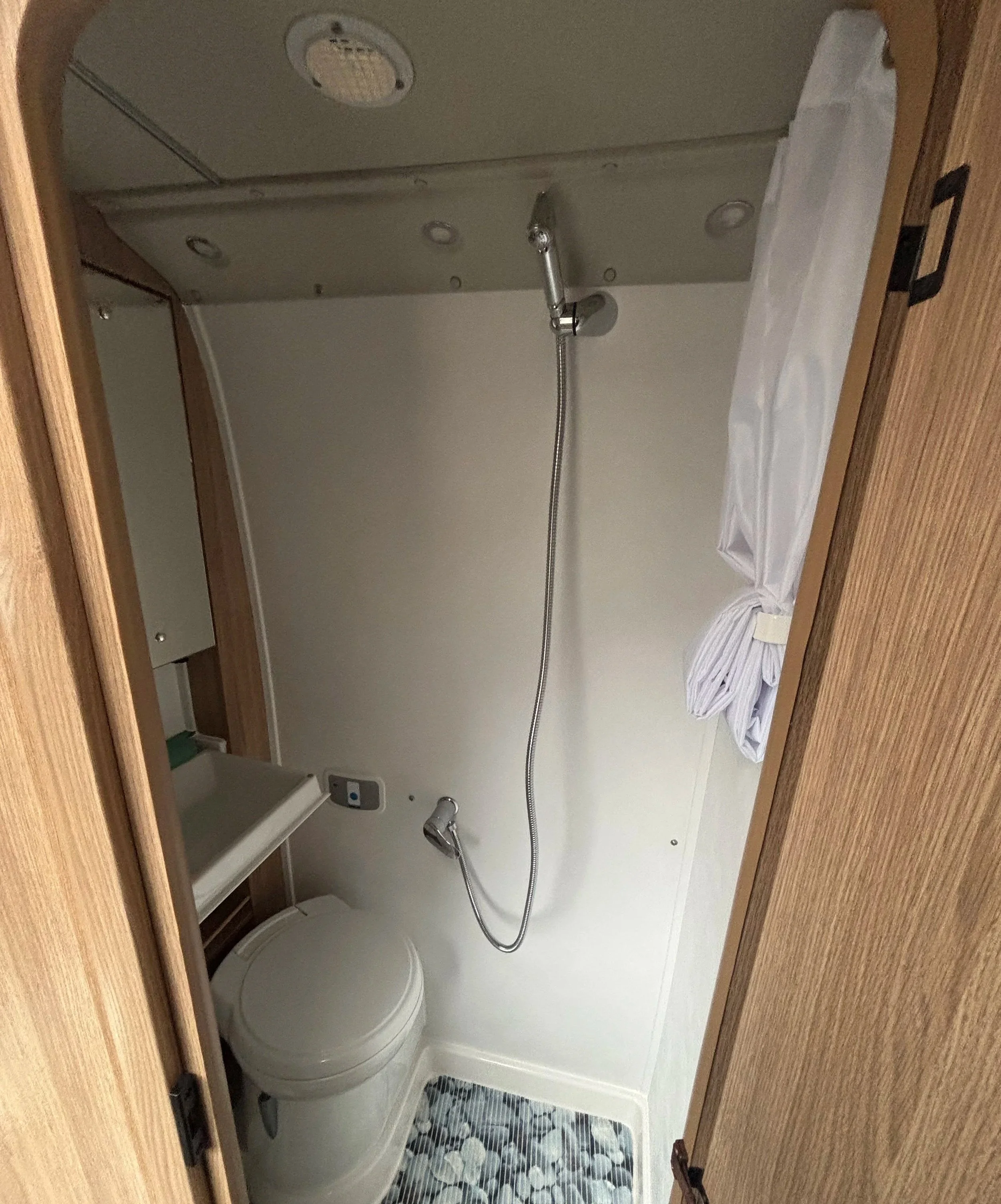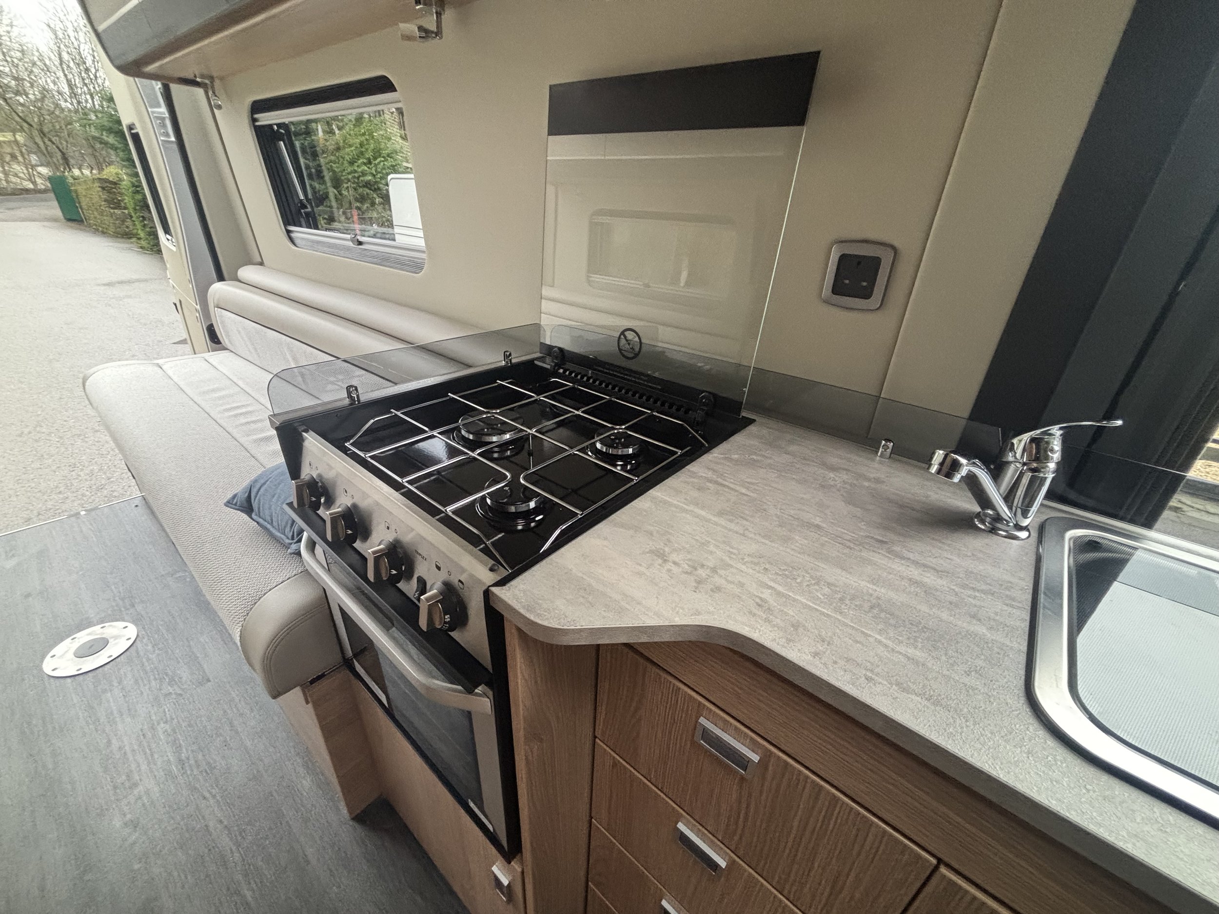 The well-equipped kitchen features ample worktop space and modern cooking facilities, making meal preparation easy while touring. The washroom includes a separate shower and quality fittings, providing everyday comfort wherever your journey takes you.