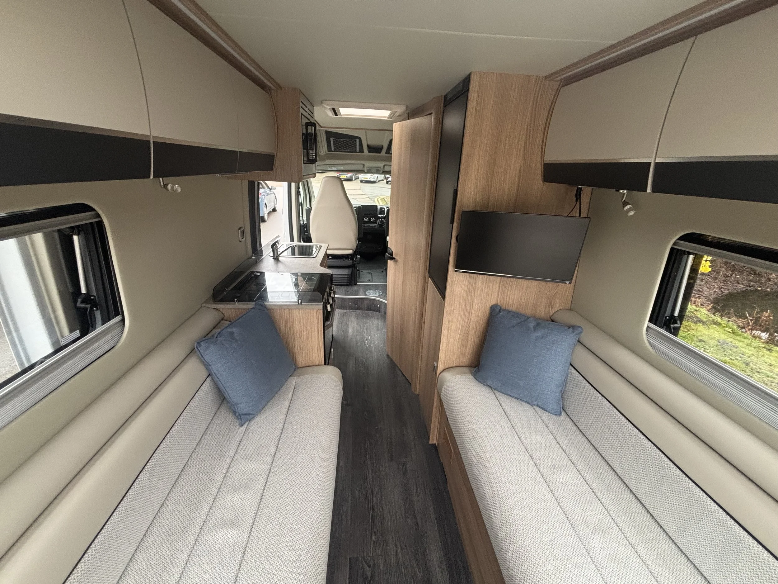 The Auto-Trail V-Line 635 SE 2025 is a stylish and practical campervan, ideal for couples or families seeking comfort and versatility on the road. Its modern exterior design and well-balanced handling provide a smooth and confident driving experience for both short breaks and longer tours.