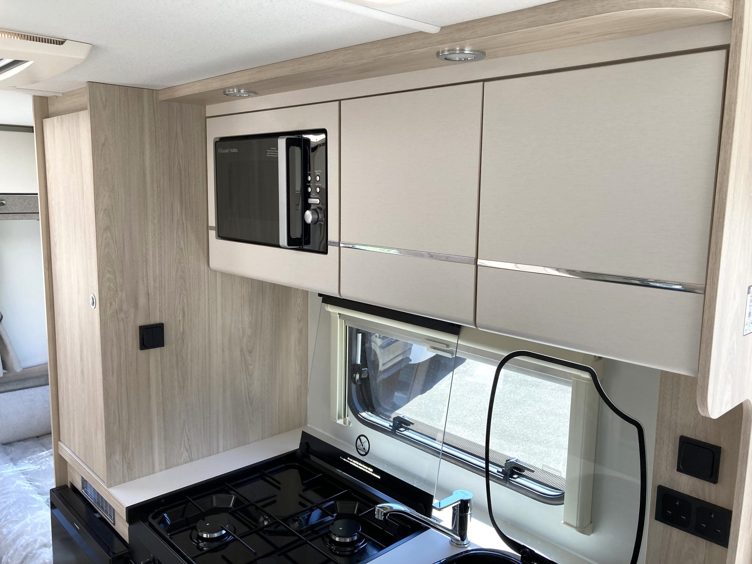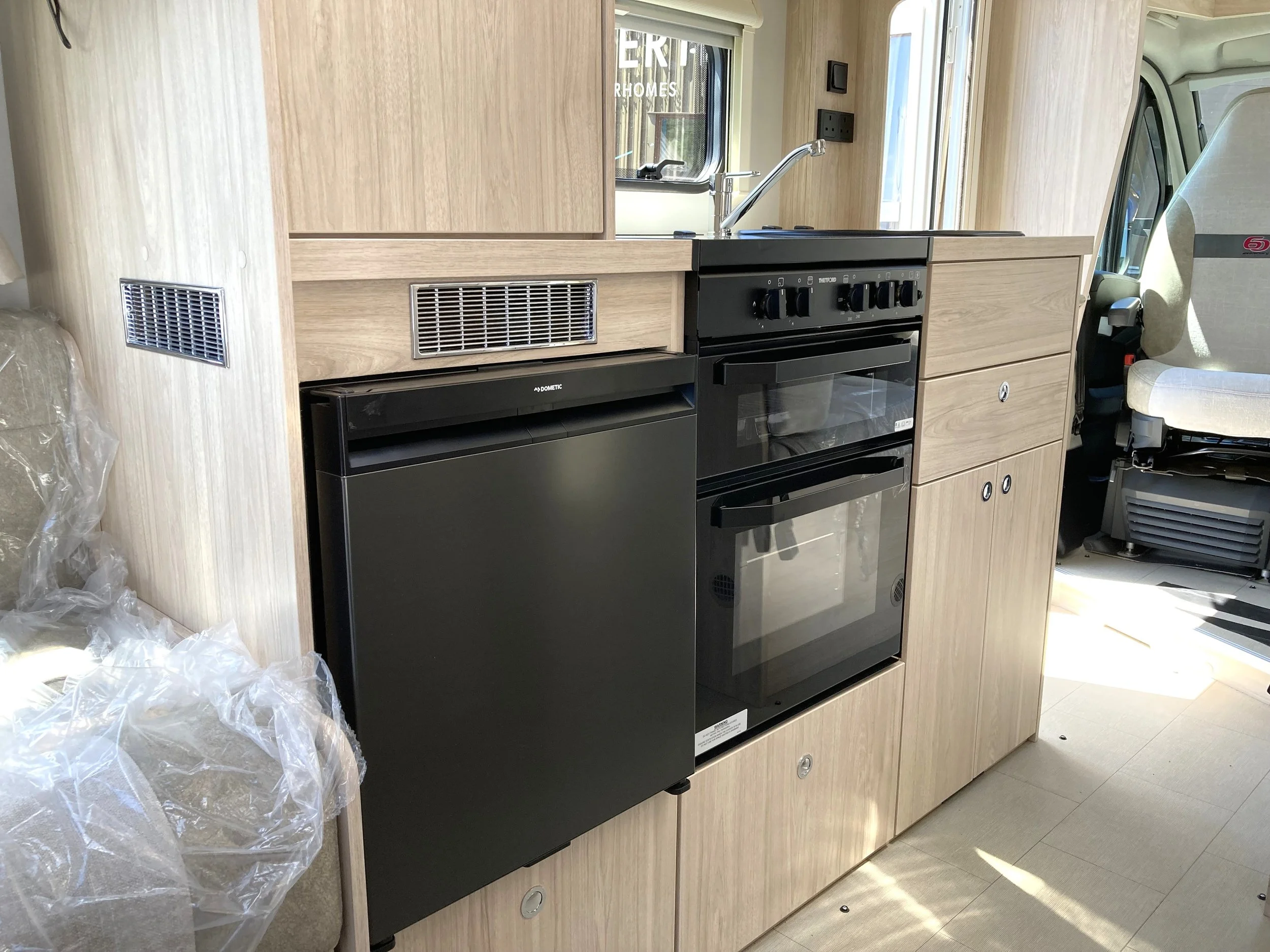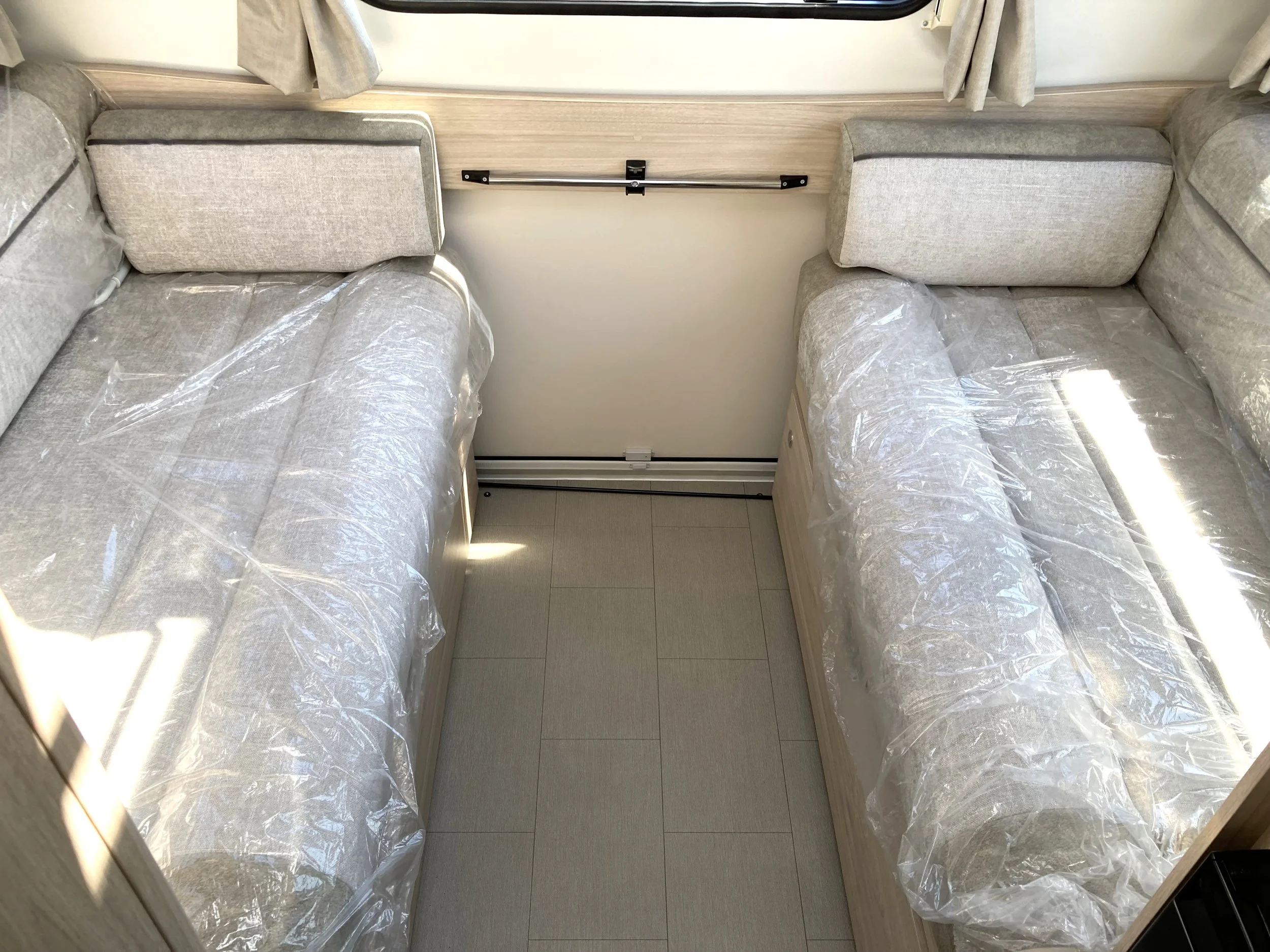 Despite its slimline profile, the Accordo 135 delivers a surprisingly spacious interior. The bright front lounge provides a welcoming space to relax and easily converts into a comfortable double bed. A well-equipped side kitchen offers everything you need for life on the road, while the practical washroom completes the layout with smart use of space.