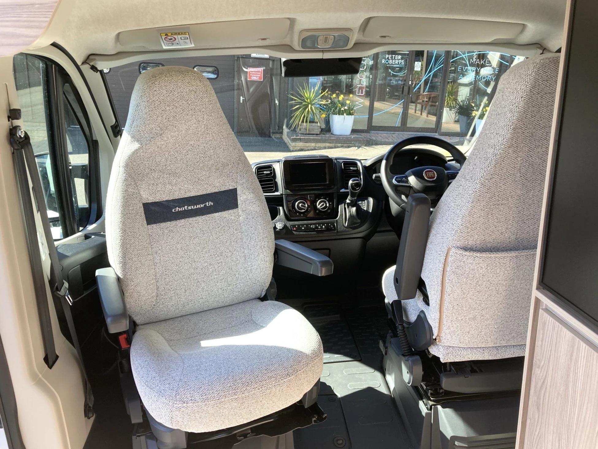 At the front, the cab seats swivel to join the living area, enhancing the sense of space and creating a sociable environment.