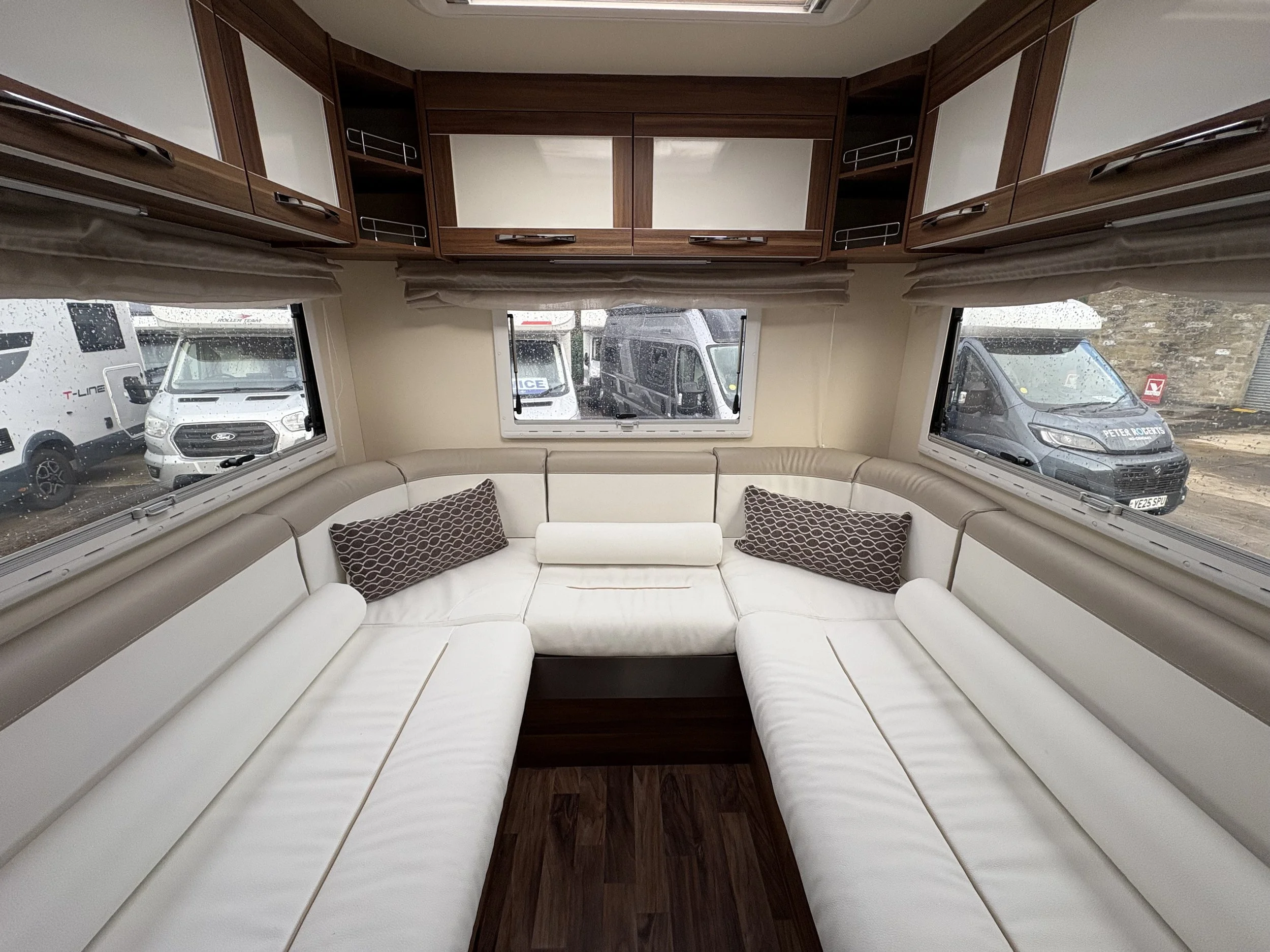The RollerTeam Auto-Roller 746 is a spacious 6-berth motorhome, designed with families and groups in mind. Its standout feature is the inviting rear U-shaped lounge, perfect for relaxing during the day and effortlessly converting into a large double bed at night.