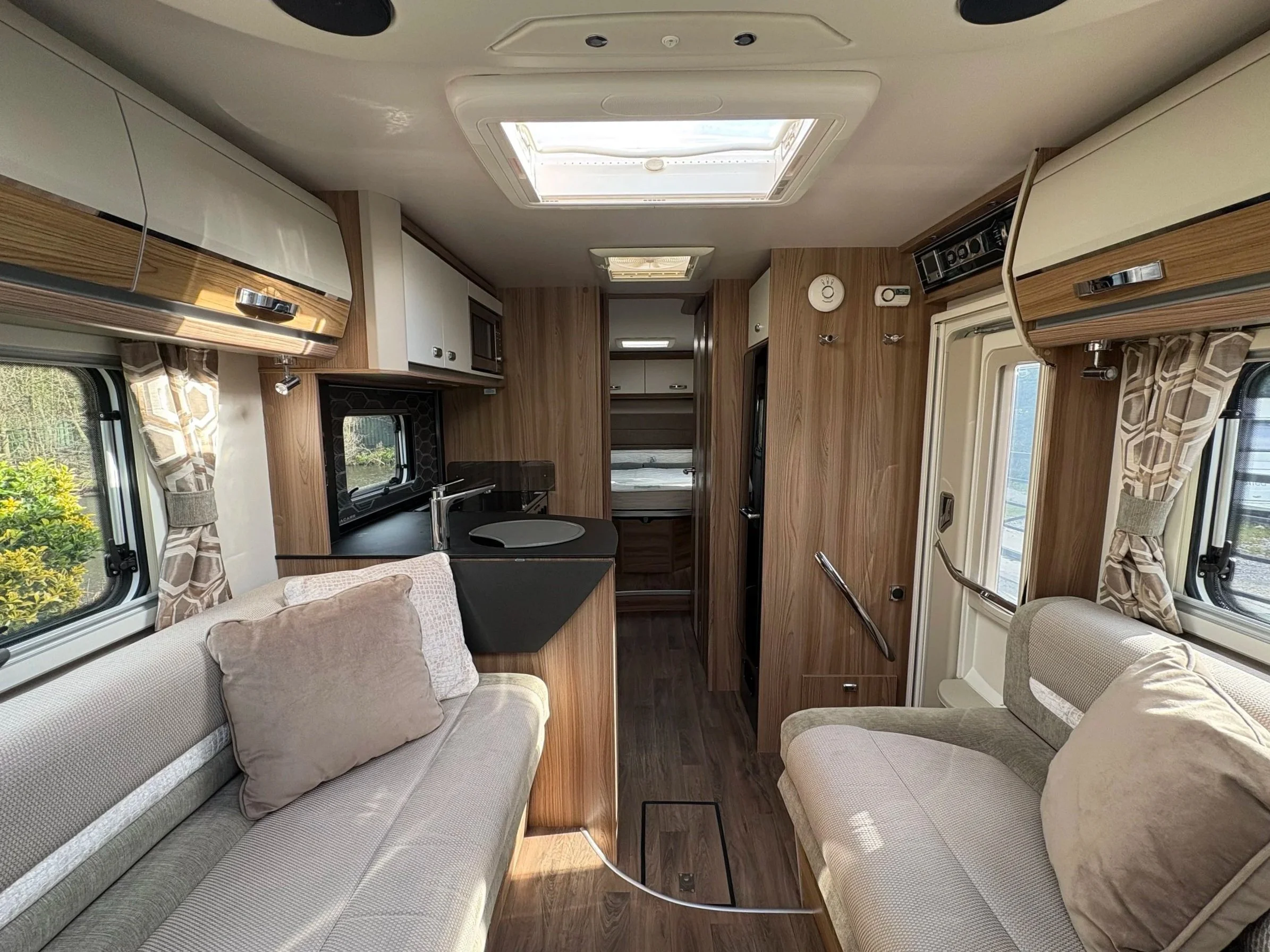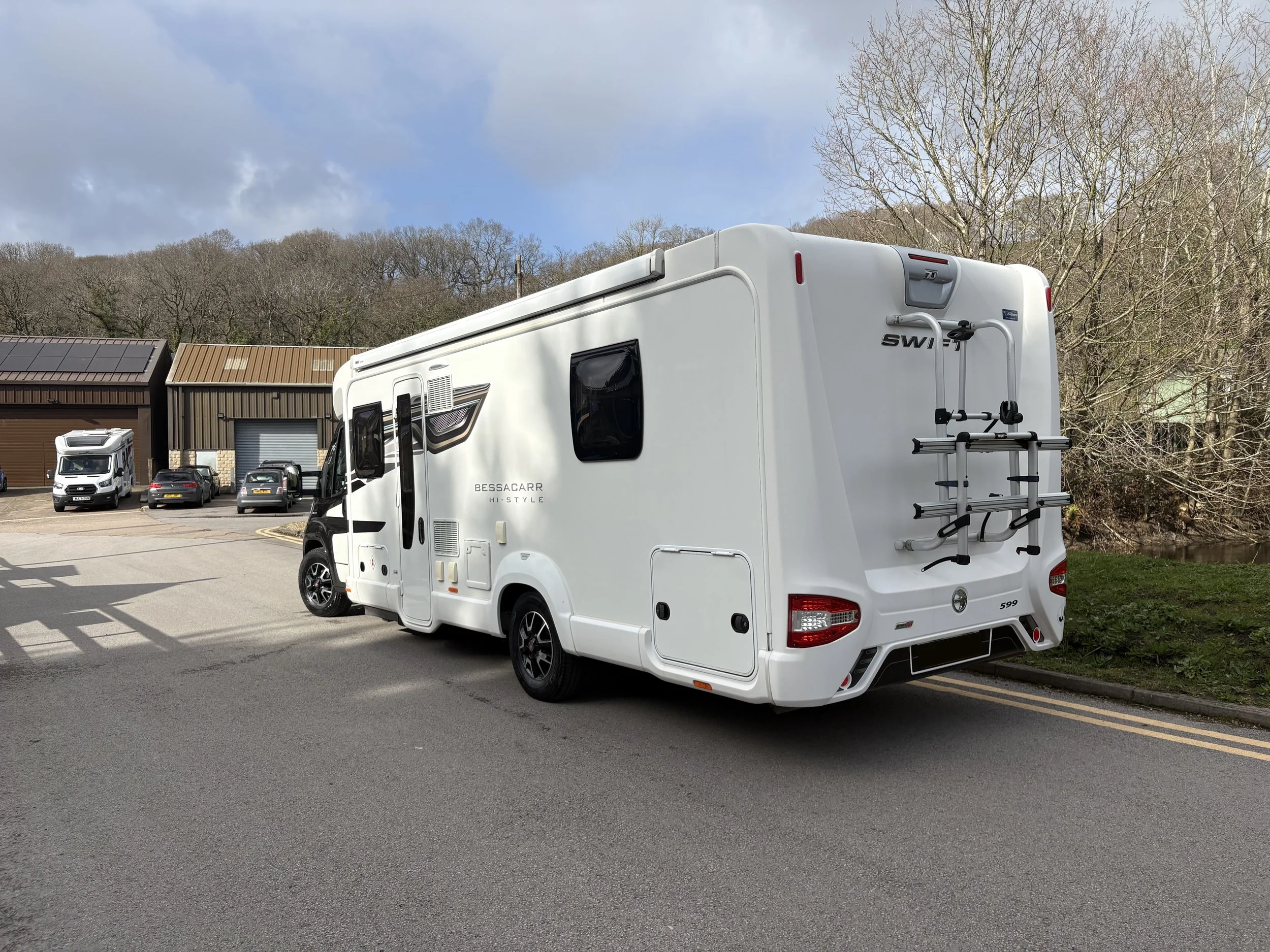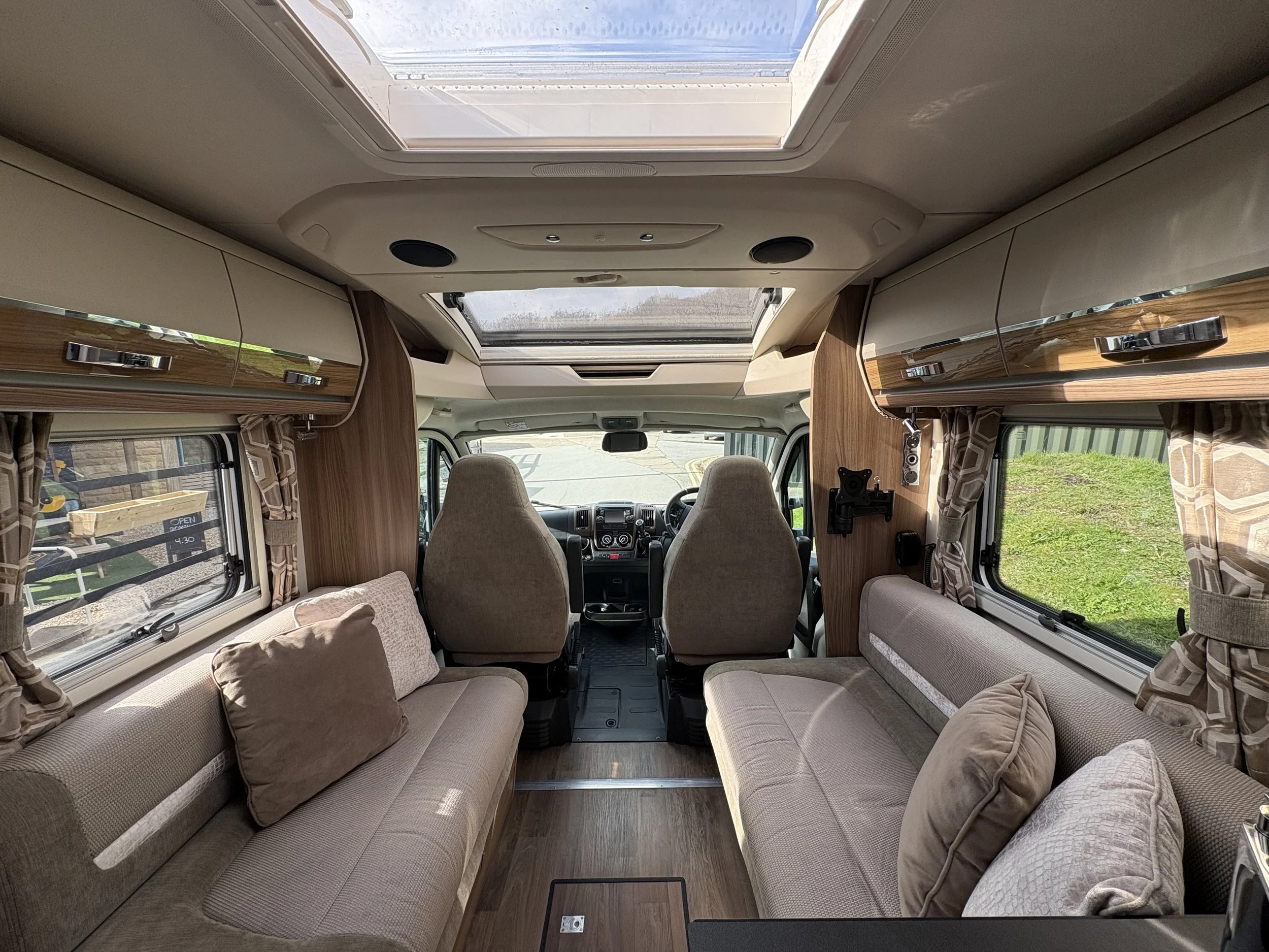 Additional features such as Alde heating, a reversing camera, and Swift’s Smart construction ensure year-round usability and peace of mind. With a large rear storage area and thoughtful design throughout, the Bessacarr 599 is perfect for couples or small families seeking a high-spec motorhome for both short breaks and extended adventures.