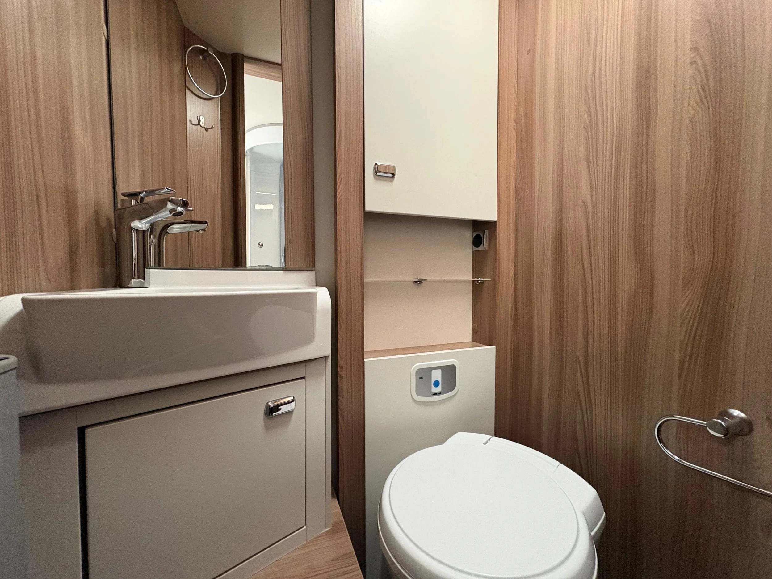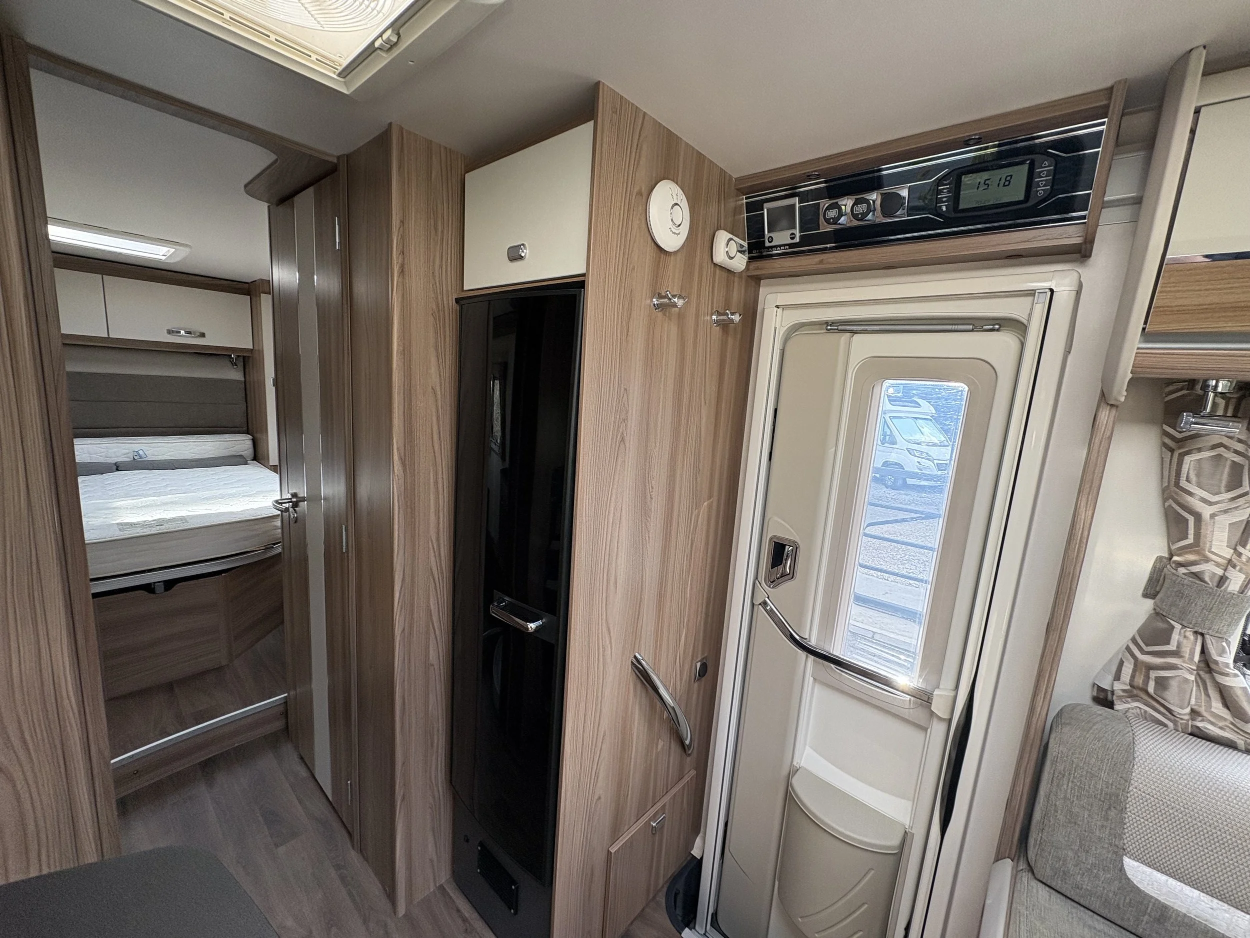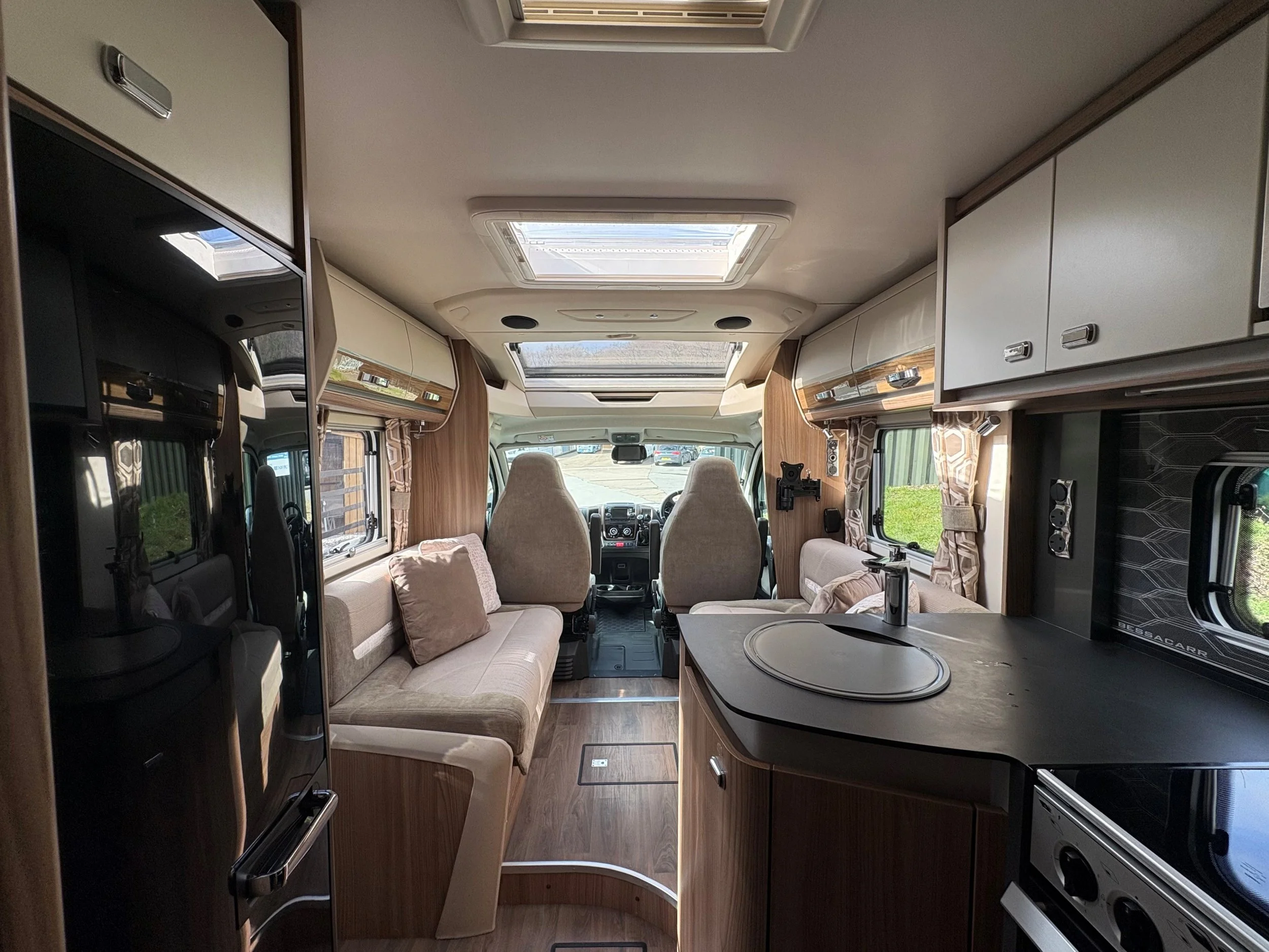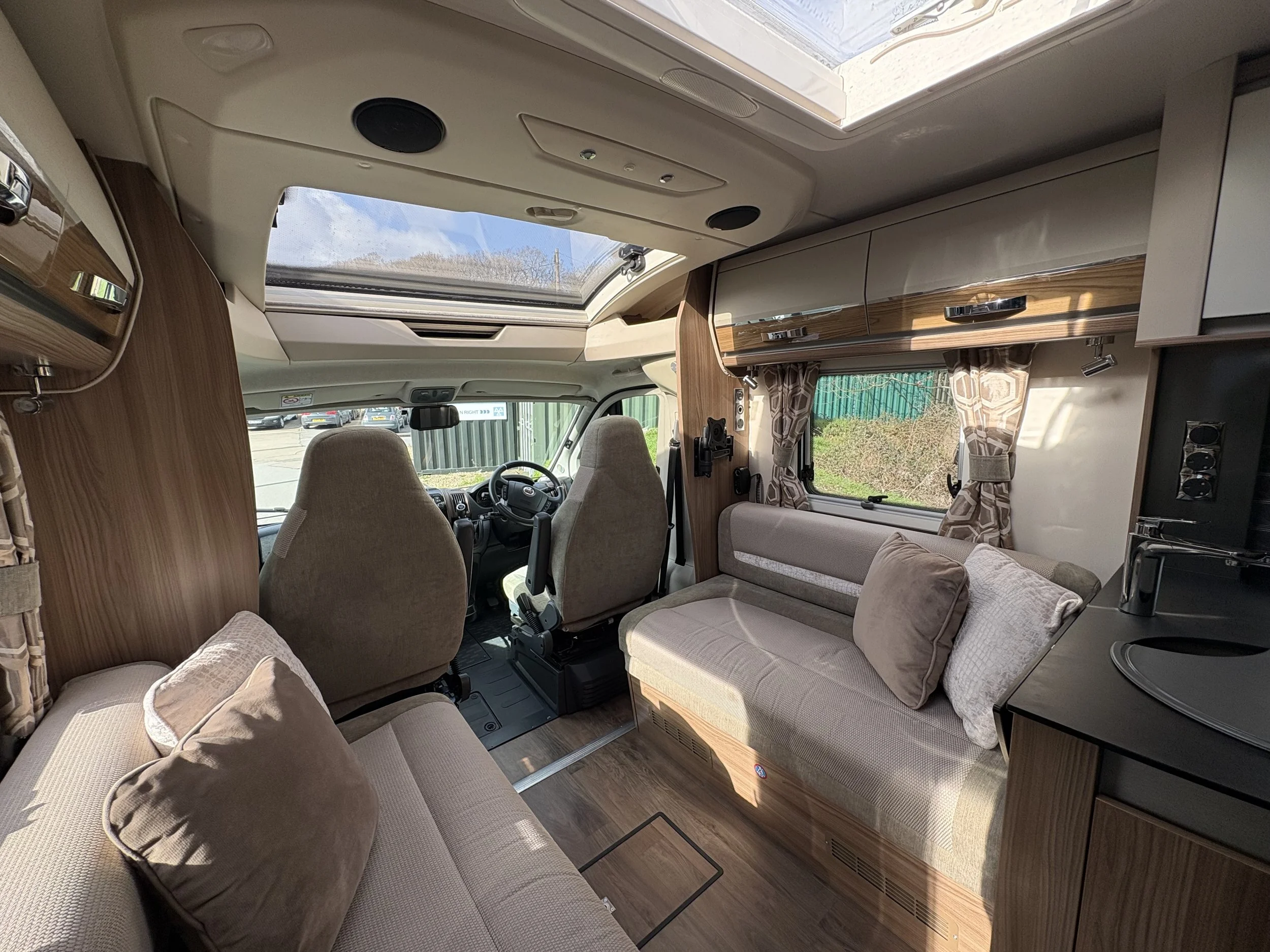 Additional features such as Alde heating, a reversing camera, and Swift’s Smart construction ensure year-round usability and peace of mind. With a large rear storage area and thoughtful design throughout, the Bessacarr 599 is perfect for couples or small families seeking a high-spec motorhome for both short breaks and extended adventures.